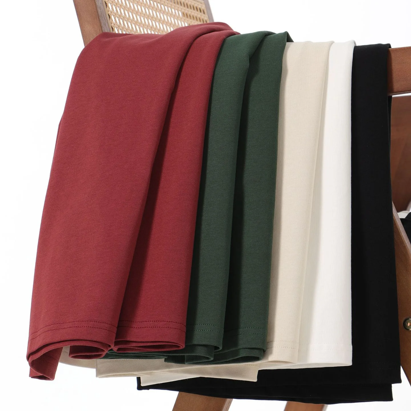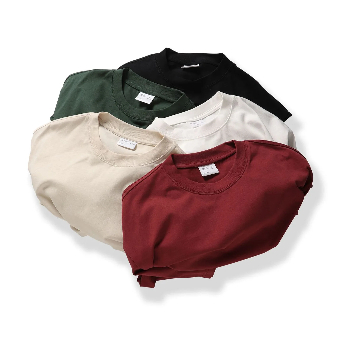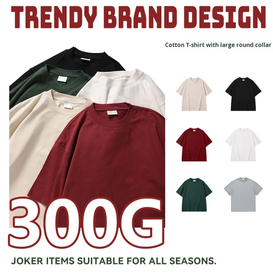 Trendy 300g Oversized Drop-Shoulder Loose Round-Neck Double-Layer Pure Cotton Men's T-Shirt
