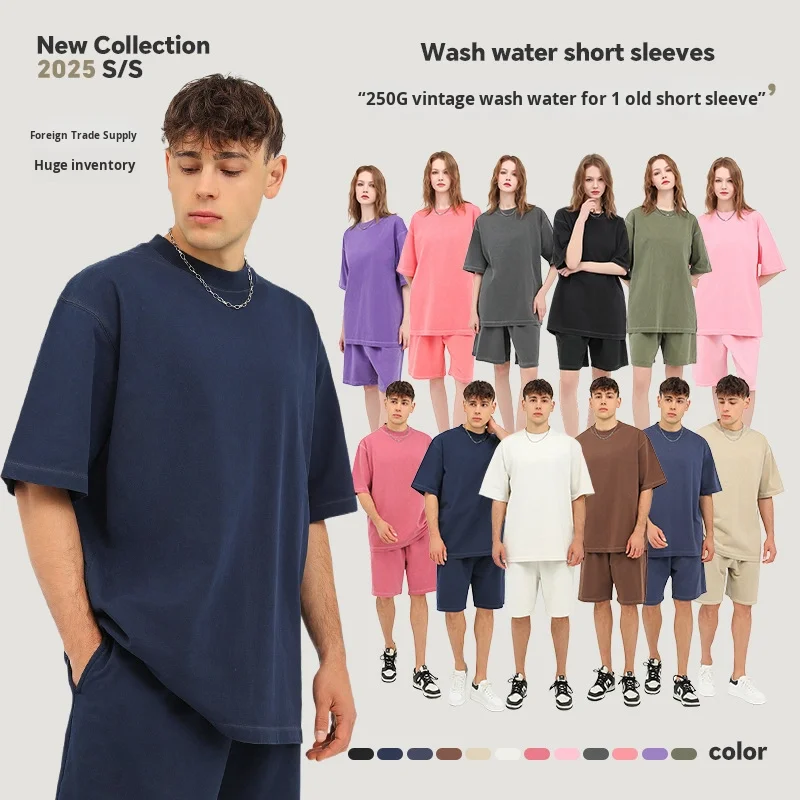 Vintage Washed Tie-Dye Distressed Heavyweight 250g Pure Cotton Loose Men's T-Shirt