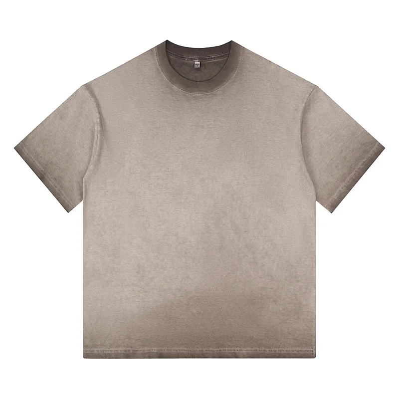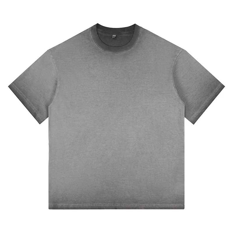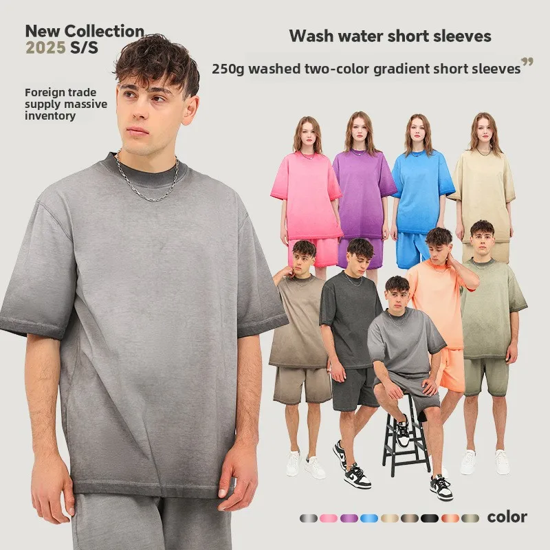 New Two-Color Gradient Neck Short-Sleeved Retro Washed Pure Cotton Loose Fit Solid Men's T-Shirt