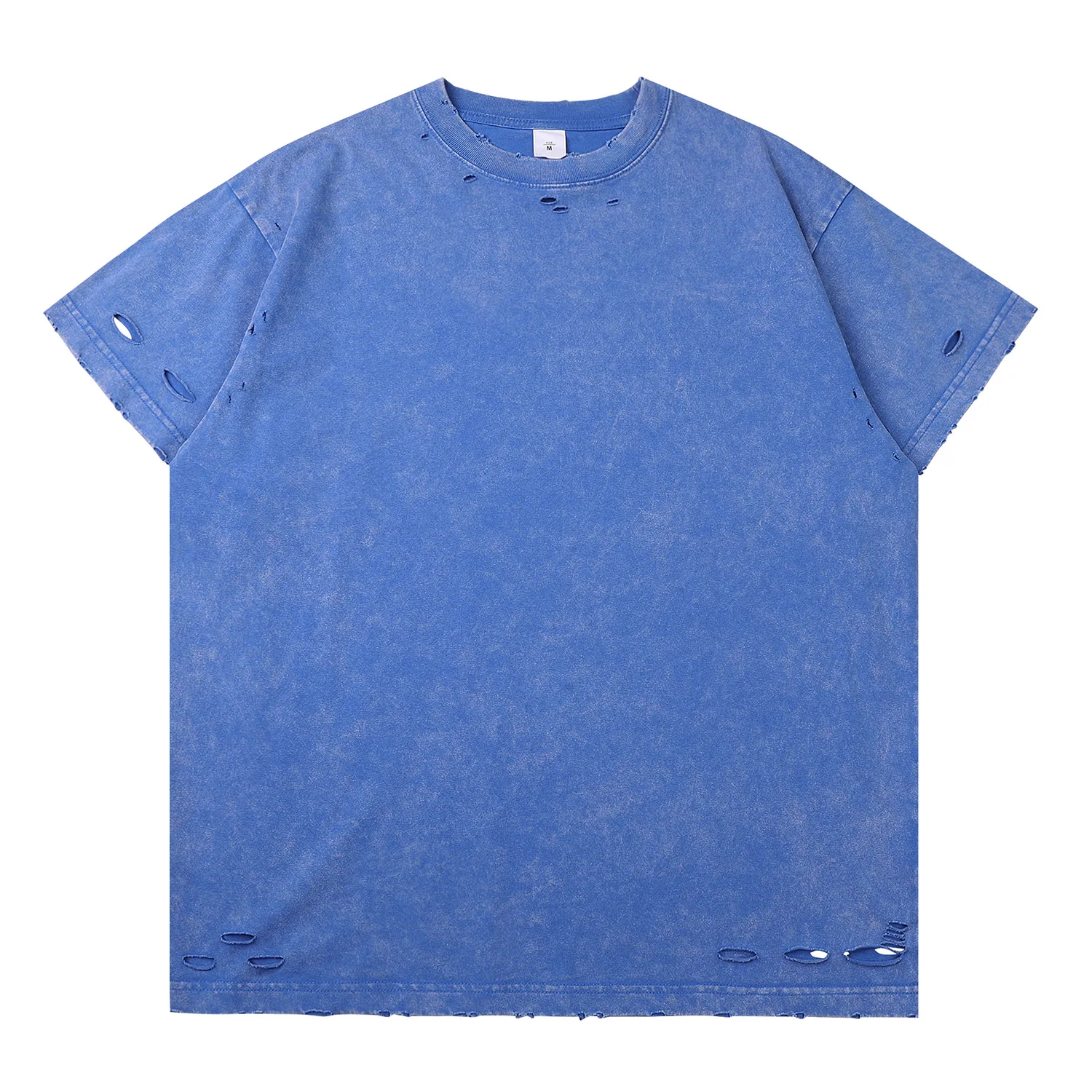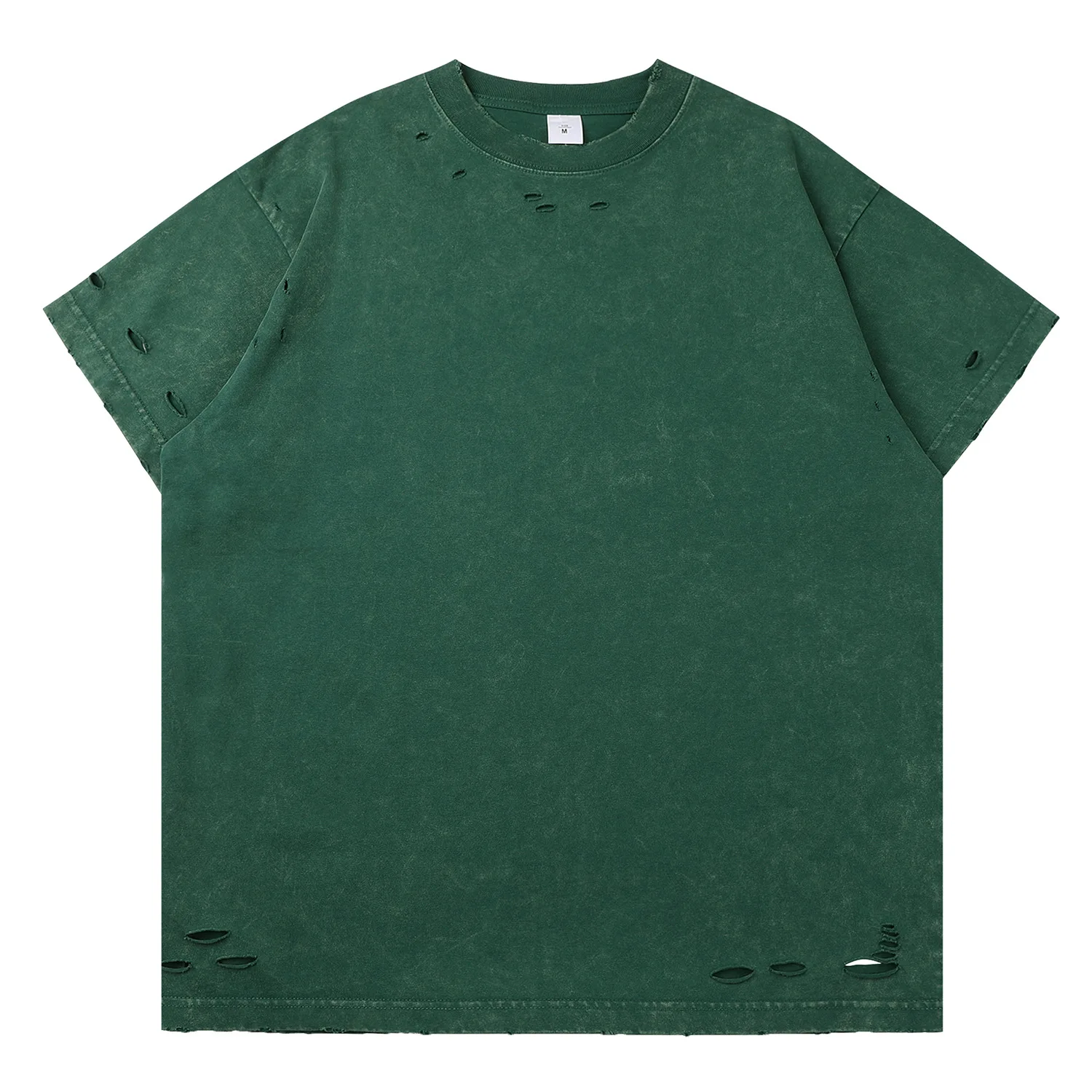 Trendy Ripped Washed Vintage 300g Vintage Heavyweight Cotton Distressed Frayed Short Sleeve Men T-Shirt