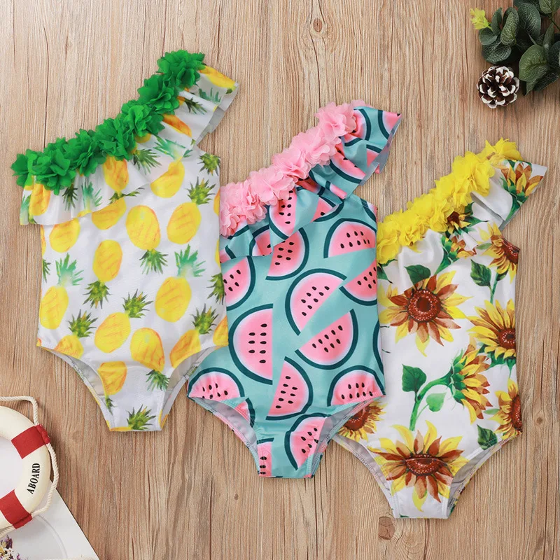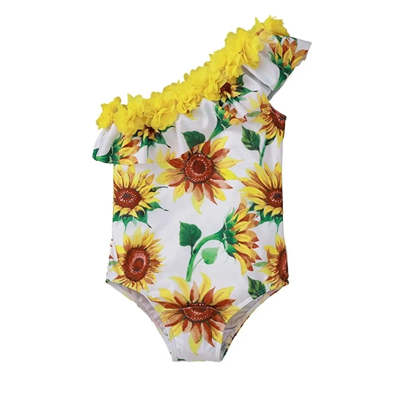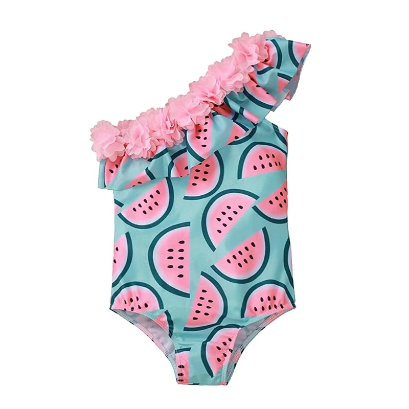 Toddler Baby Girls Animal Print One Shoulder Ruffles Bikini Swimsuit Summer Eco-Friendly Breathable