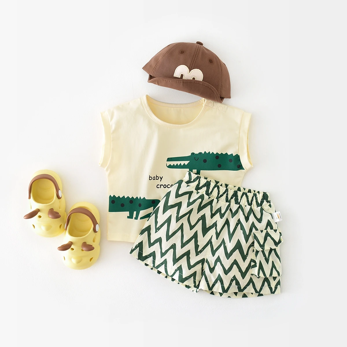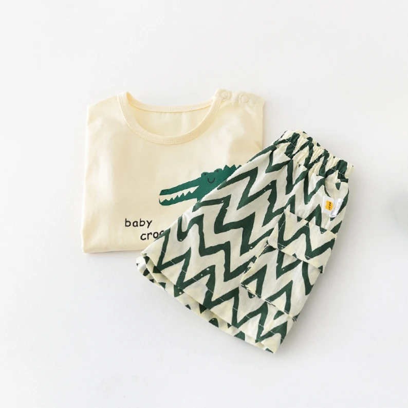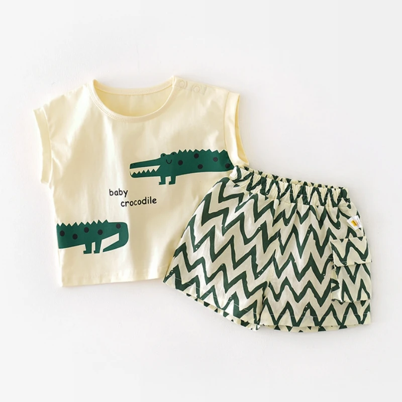 Wholesale High Quality Casual Summer Leisure Print Short Sleeve Kids Fashion Boys Clothing Set