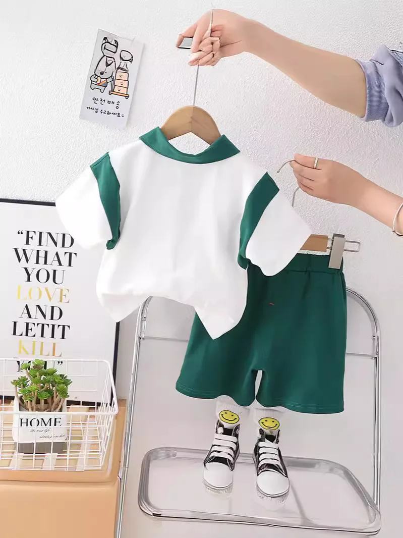 Summer Kids Clothes Short Sleeve Letter Polo Shirt Shorts Two Piece Tracksuits Children Clothing for Boy