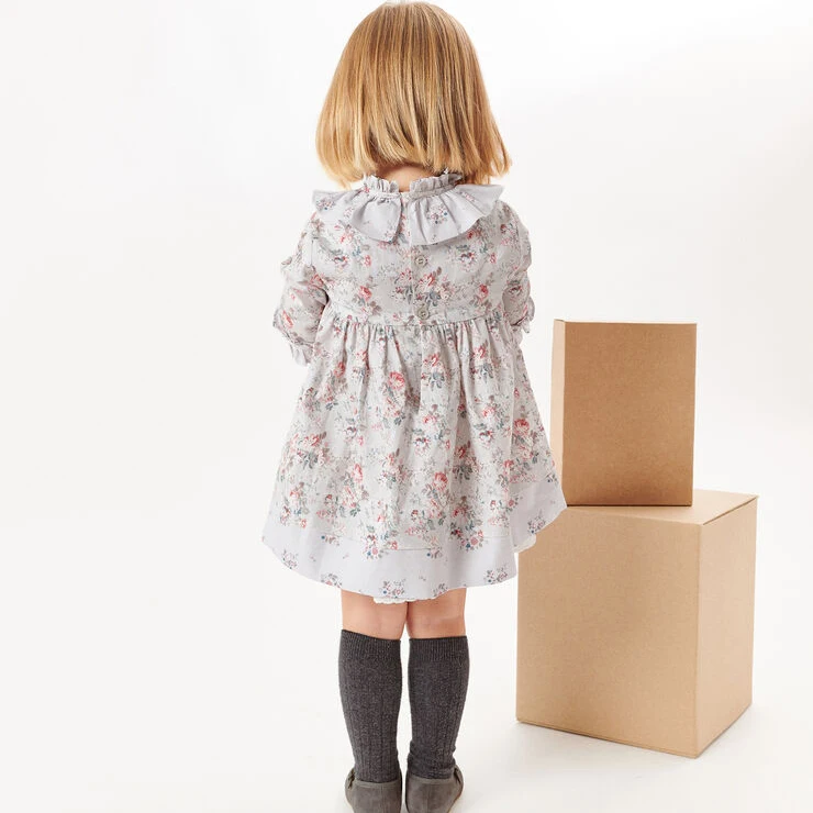 Baby Clothes Frill Collar Custom One Piece Vintage Flower Print Baby Girl Dress