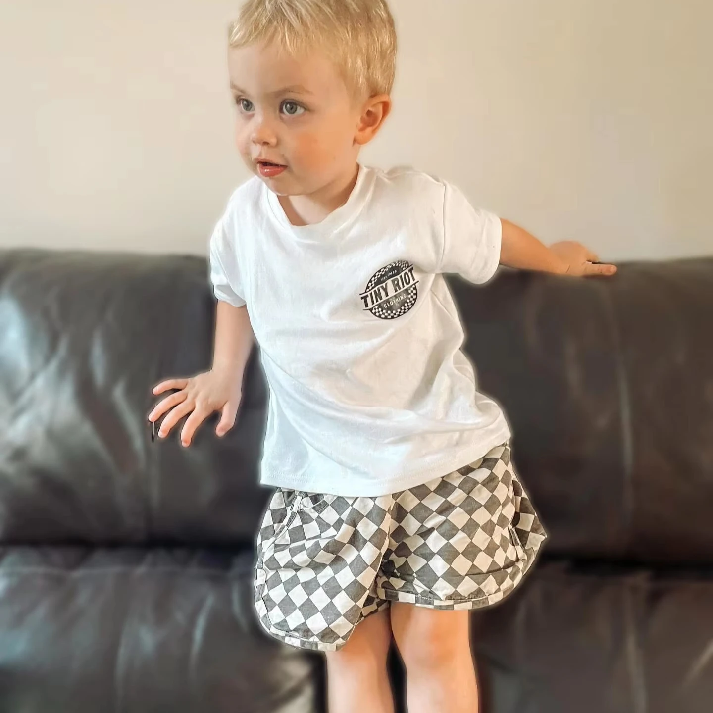 Manufacturer Custom Graphic Tee and Checkered Elastic Waist Shorts Cotton Knitted Fabric Boys Clothing Set