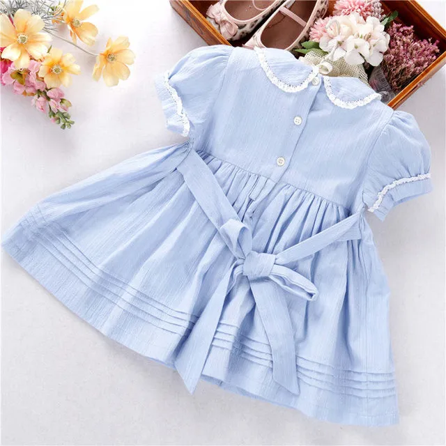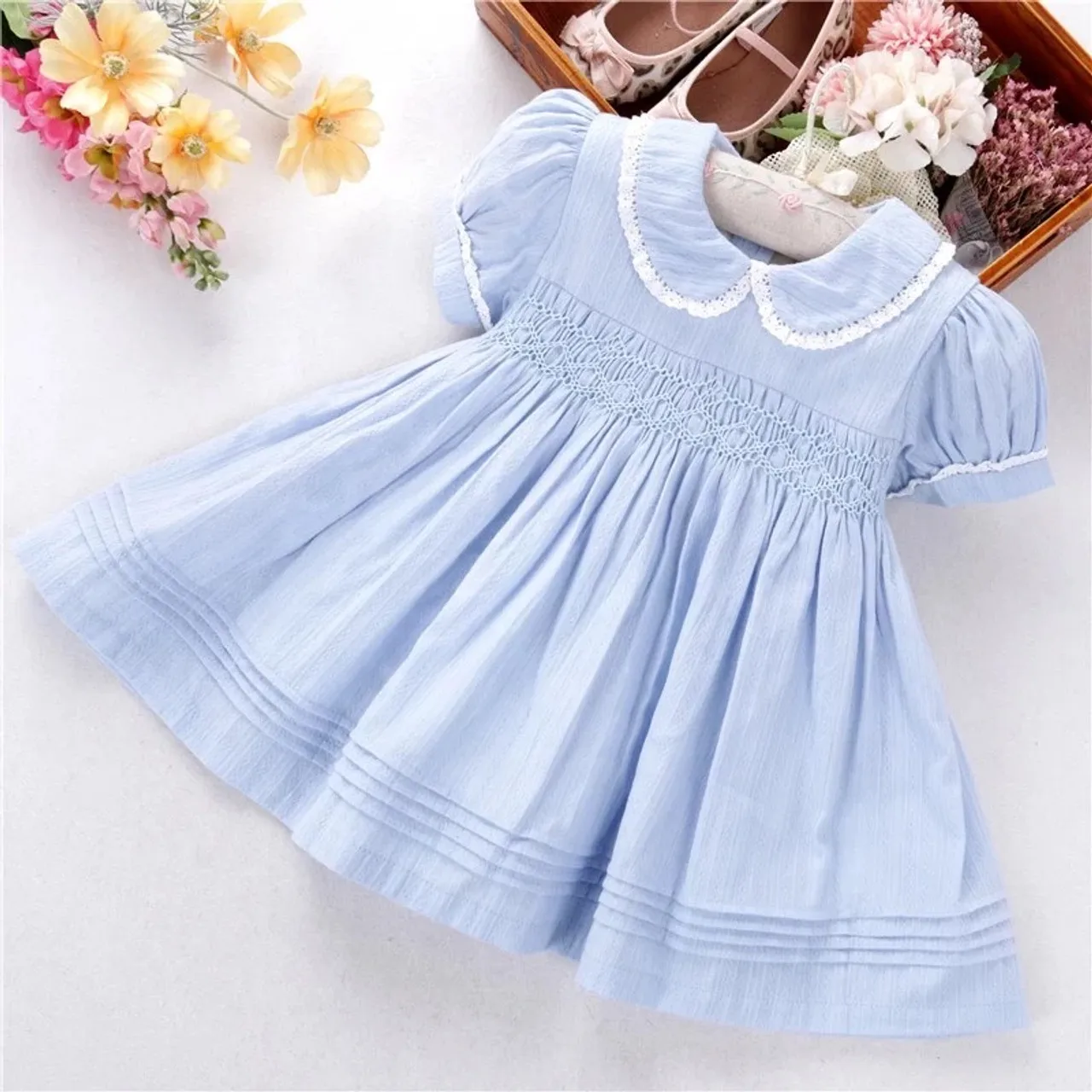 Hot Sale Smocked Girl Dress Boutique Children Clothes Handmade Summer Christmas Cotton Smocked Dresses