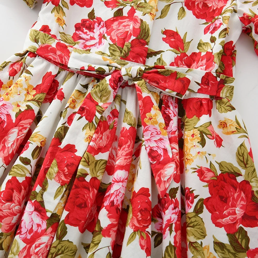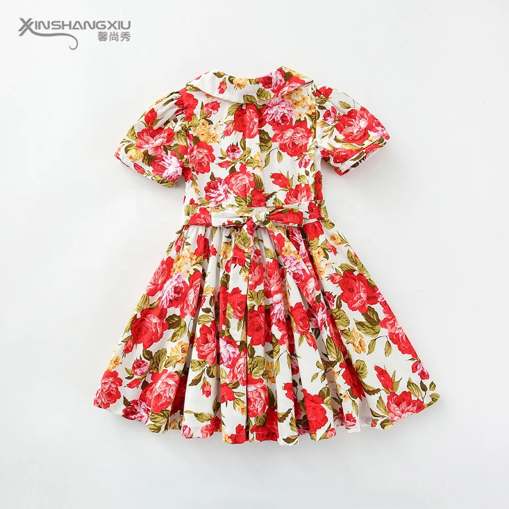 Summer Kids Flower Fashion Vintage 100%cotton Floral Children Baby Girls Dresses