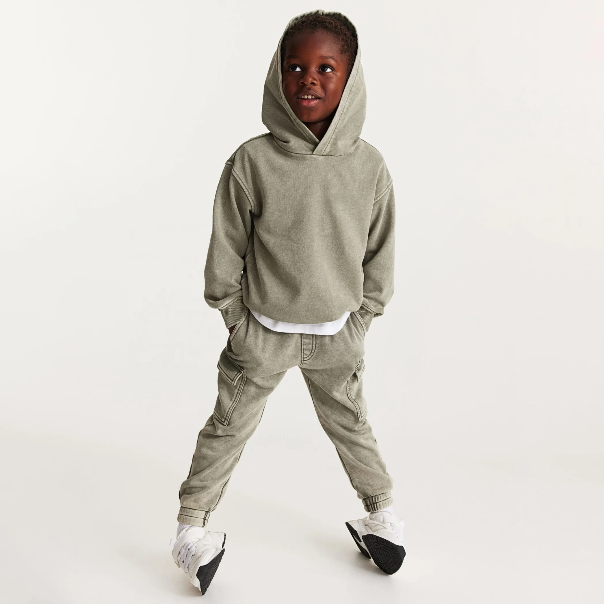 2026 Winter Fall Kids Solid Tracksuit Vintage Acid Wash Hoodie Sweatpants and Jogger Set Boys Outfits