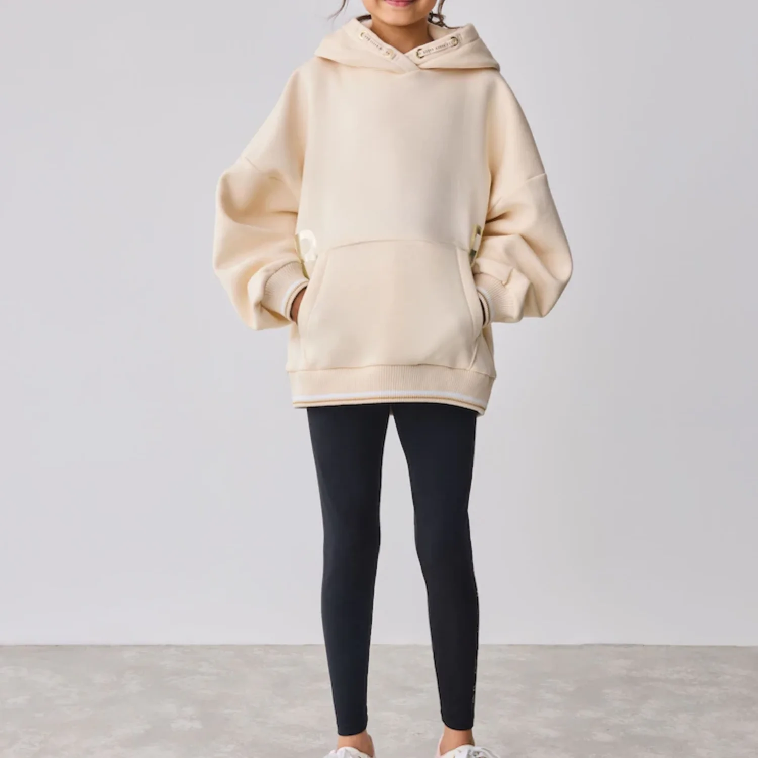 Custom OEM No String Hoodies Oversize Pullover Drop Shoulder Hoodies Fleece and Leggings Pants Girls Clothing Set