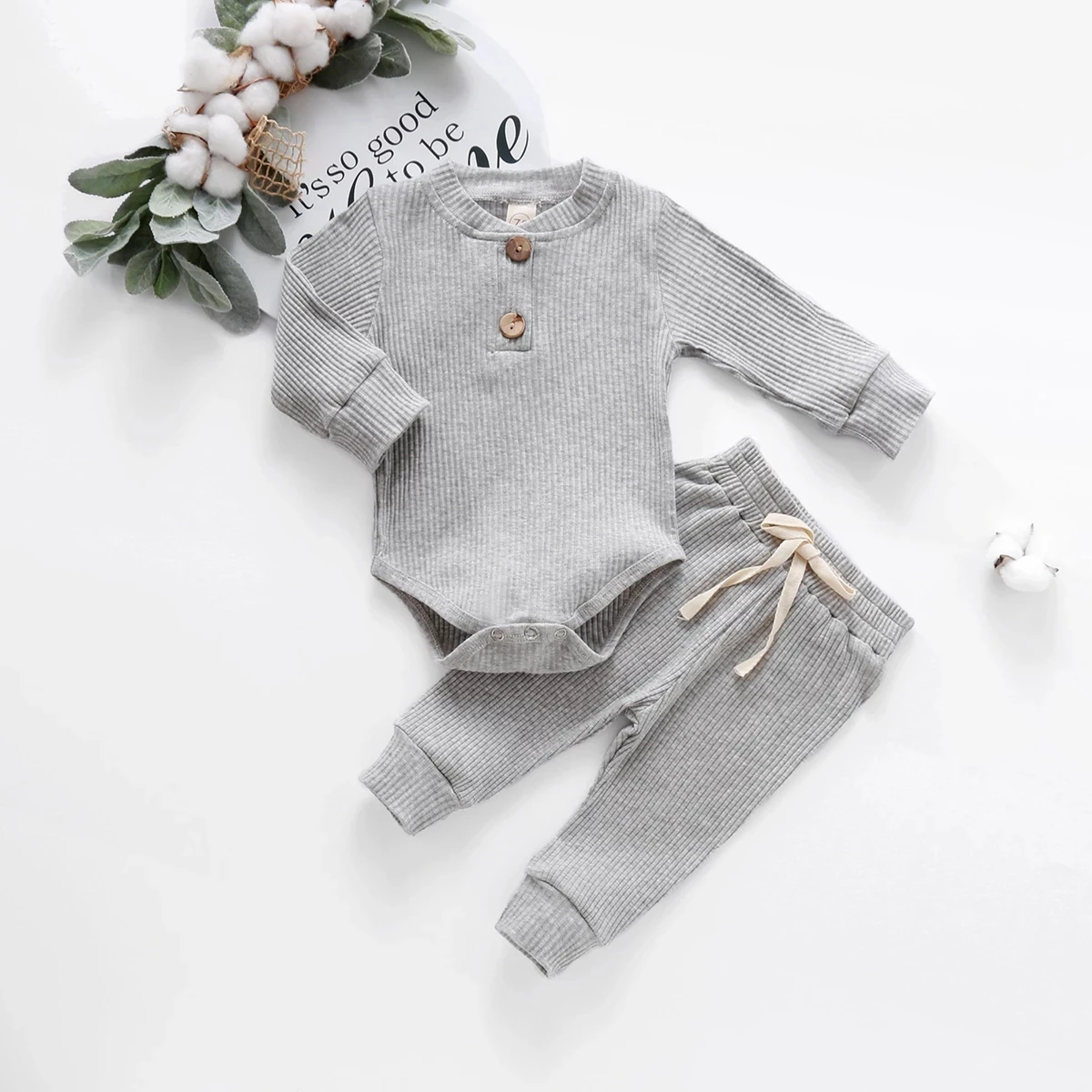 Toddler Baby Clothes Casual 100% Cotton Ribbed Rompers + Pants Set for Boys and Girls