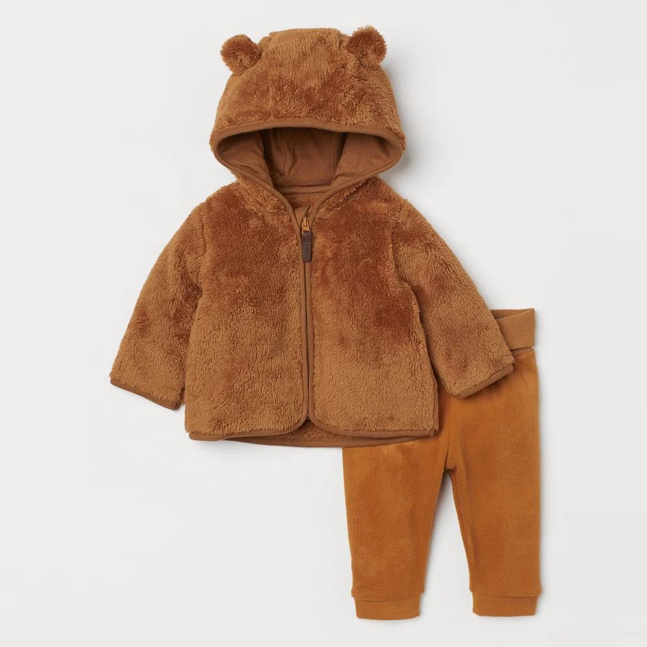 Baby Winter Clothes Polar Fleece Jacket Bear Ears Hat Cute Hooded Newborn Baby Top and Pants Warm Clothes Set
