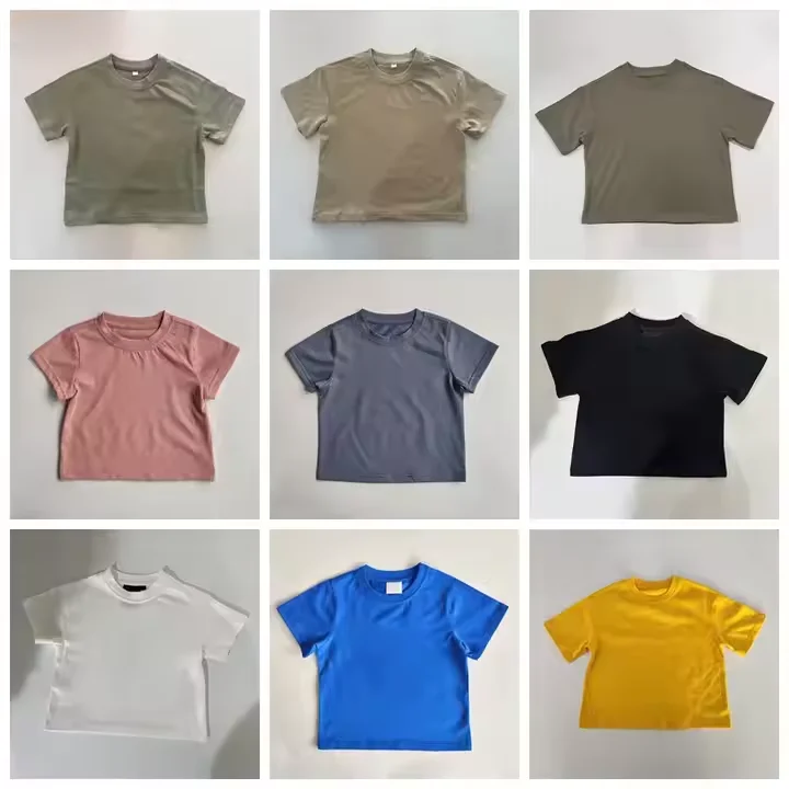 Hot SellingToddler Kids Unisex Oversized Boxy T-Shirt Custom LOGO 100% Cotton Loose Hem Short Sleeve Baby Drop Shoulder Top