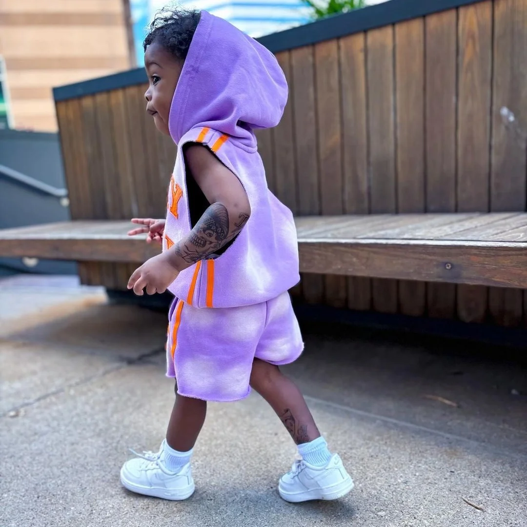 Fashion Streetwear Custom Patchwork Tie Dye Color Sleeveless Shorts Streetwear Girl Boy Clothing Tracksuit Boys Clothing Set