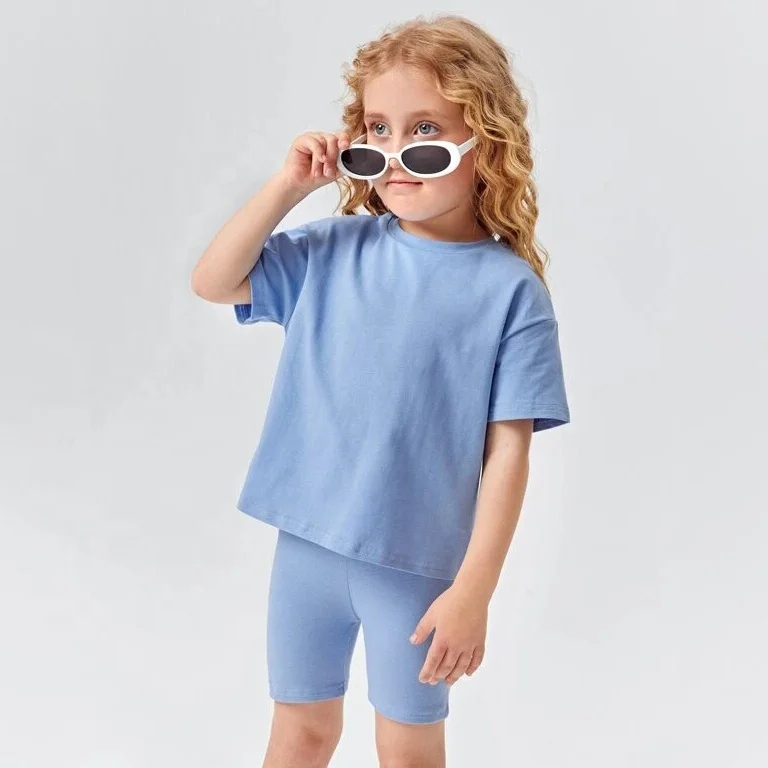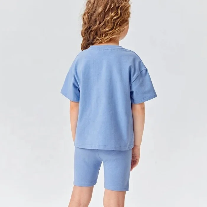Trendy Fashion Custom Solid Short Sleeve T Shirt Shorts Set 2026 Summer Spring Children Clothes 2 Piece Kids Girls Outfits