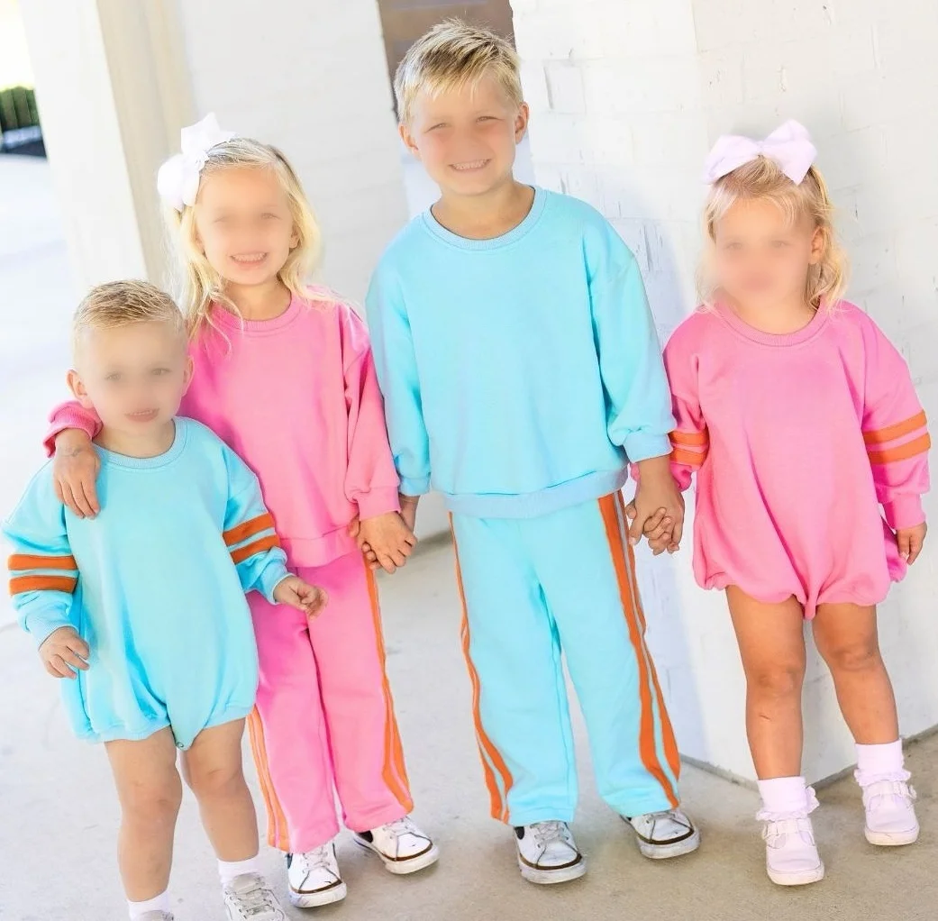 Custom Logo Autumn Winter Fleece Sweatshirt Two Piece Set Girl Tracksuits Jogger Kid Solid Color Warm Round Neck Sport Clothes