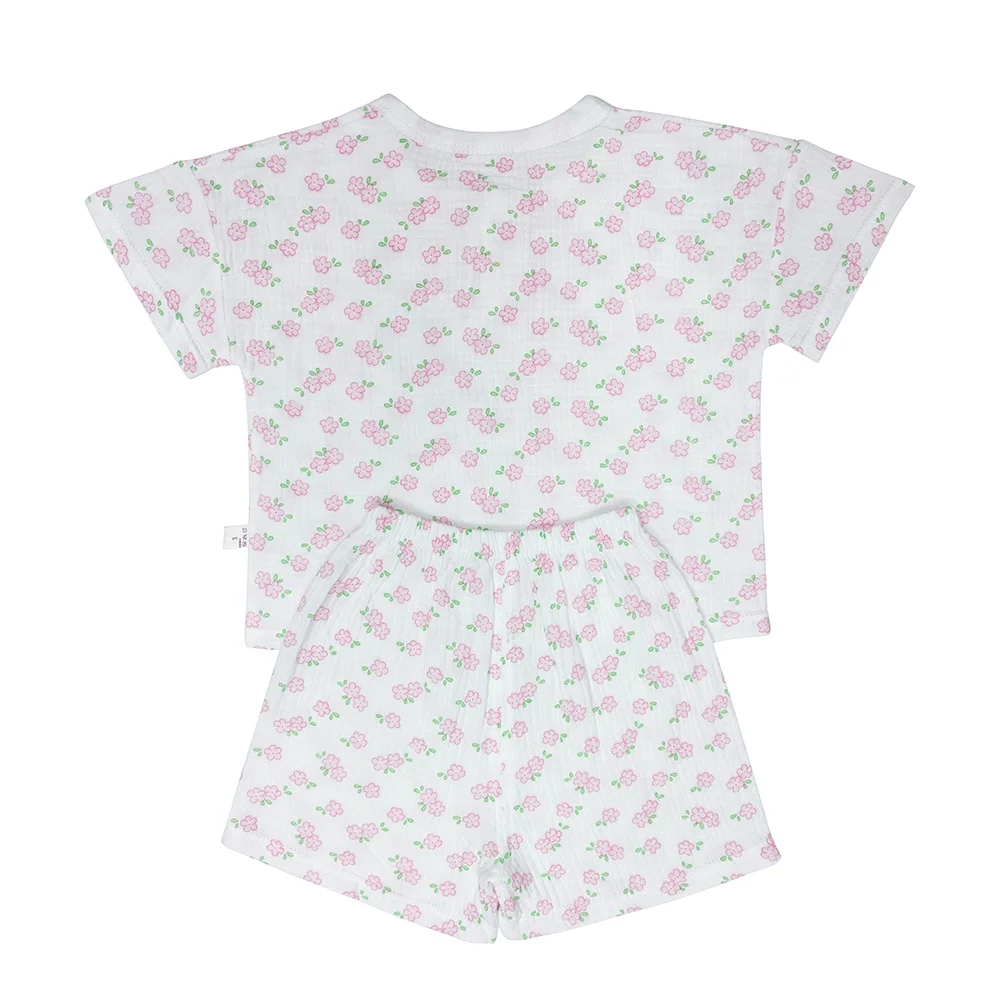 Floral Print Soft Muslin Cotton Toddler Clothing Two Pieces Set Outfits Oversize Kids Summer Clothes 2026