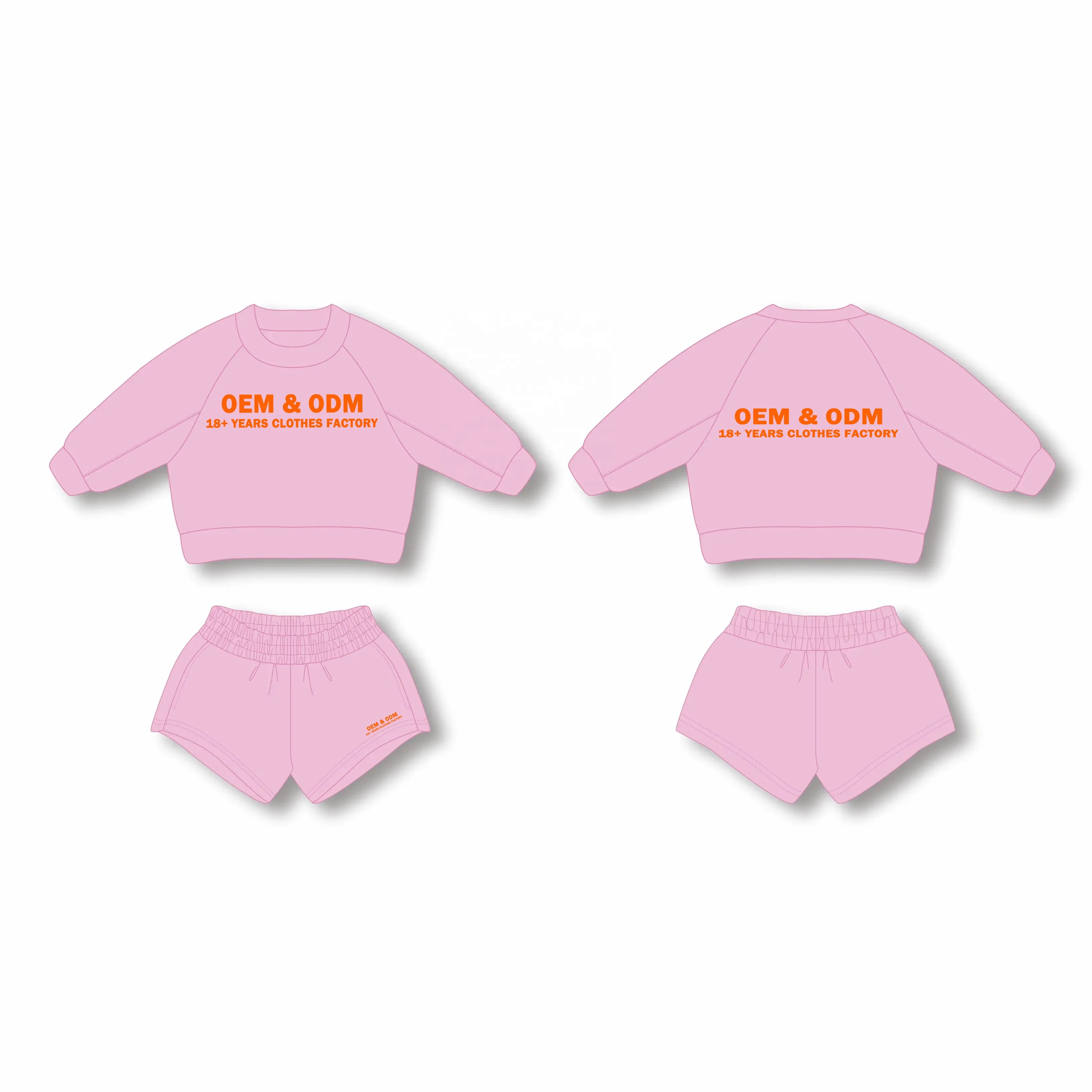 OEM High Quality Children Clothing Custom Design Sweatshirt Jumper Shorts Set 100% Cotton Toddler Kids Sweatsuit