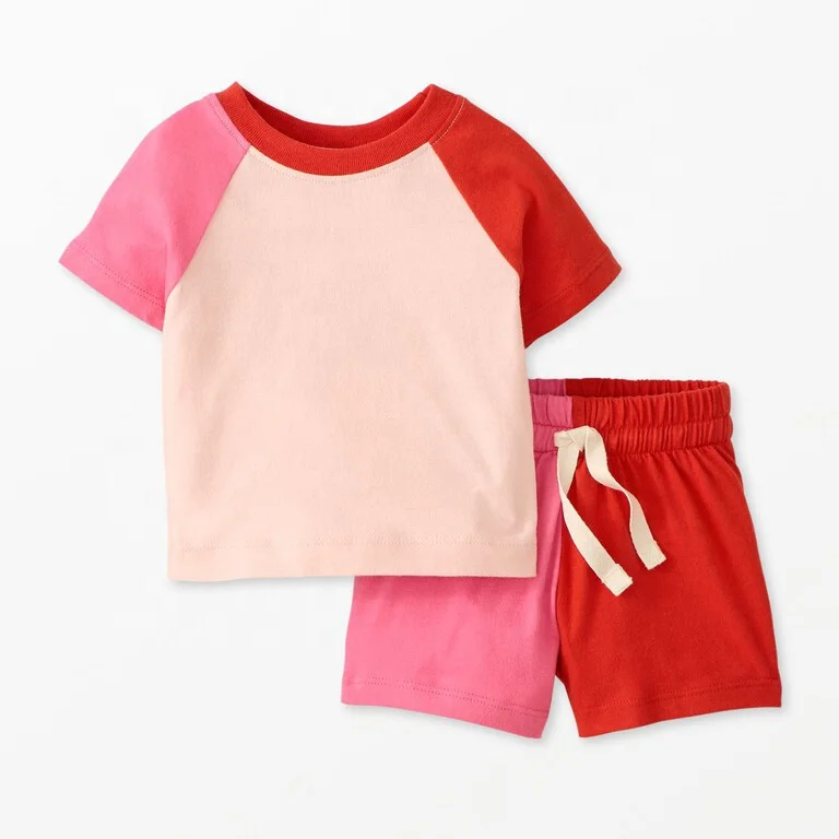High Quality Summer Baby Outfits Cotton Two Piece Set Girls Kids Colorblock T-shirt Shorts Set