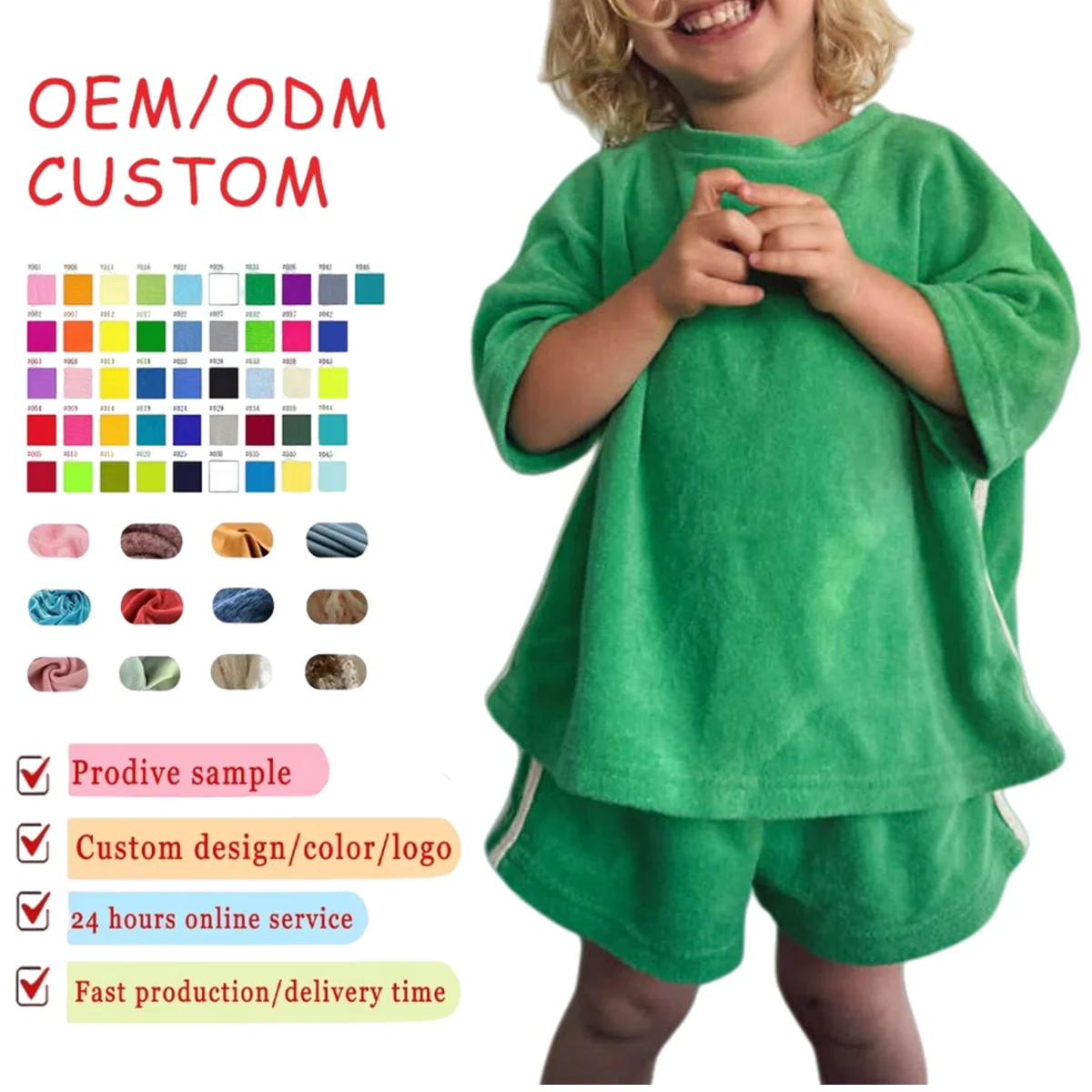 Wholesale Unisex Baby Kids Terry Cloth Short Sleeve T-shirt&shorts Sets 2pcs Outfit Kids Clothing Set