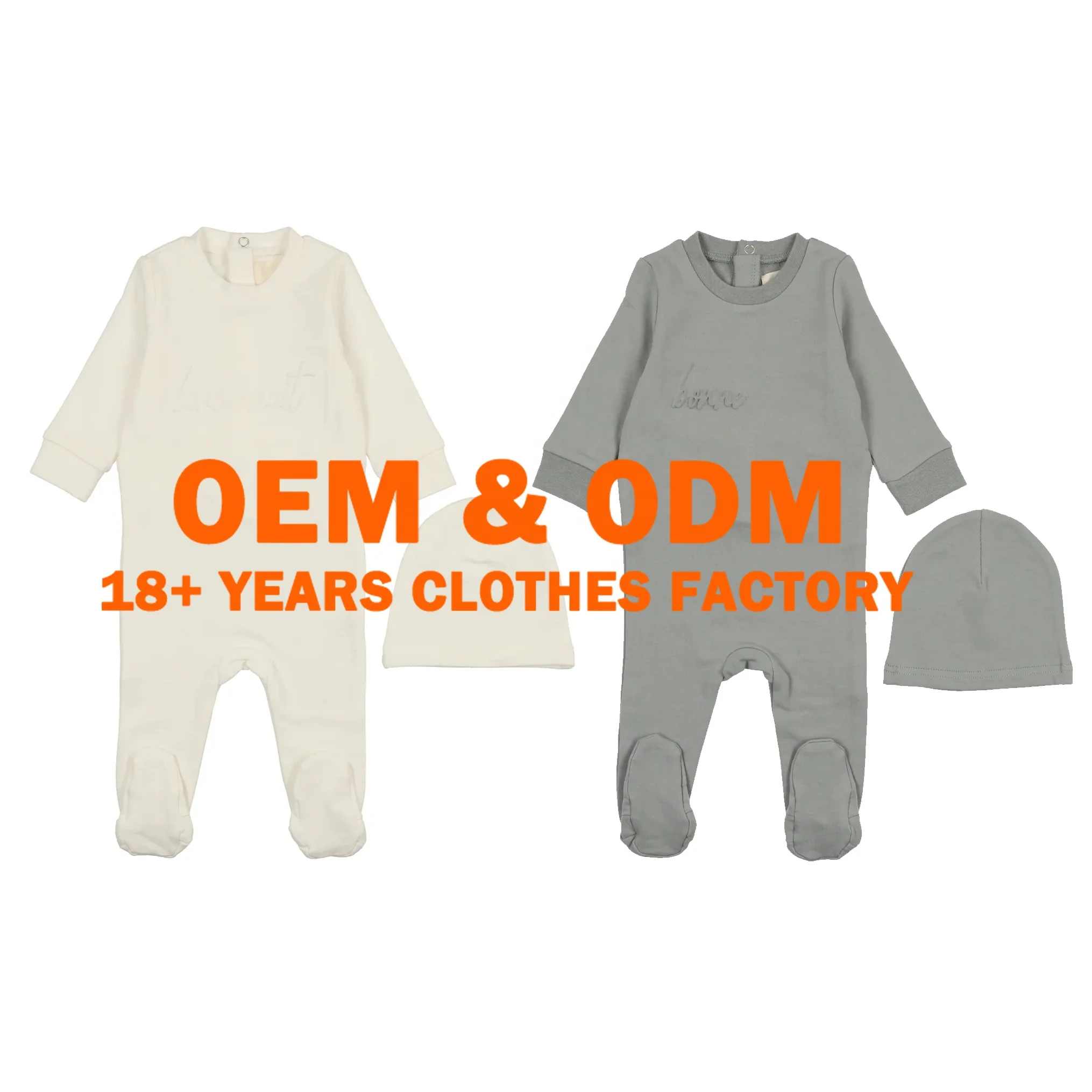 Kids Clothes Manufacturer Custom Logo Caps Button Terry Cotton Embroidery Autumn Winter Toddler Baby Clothes