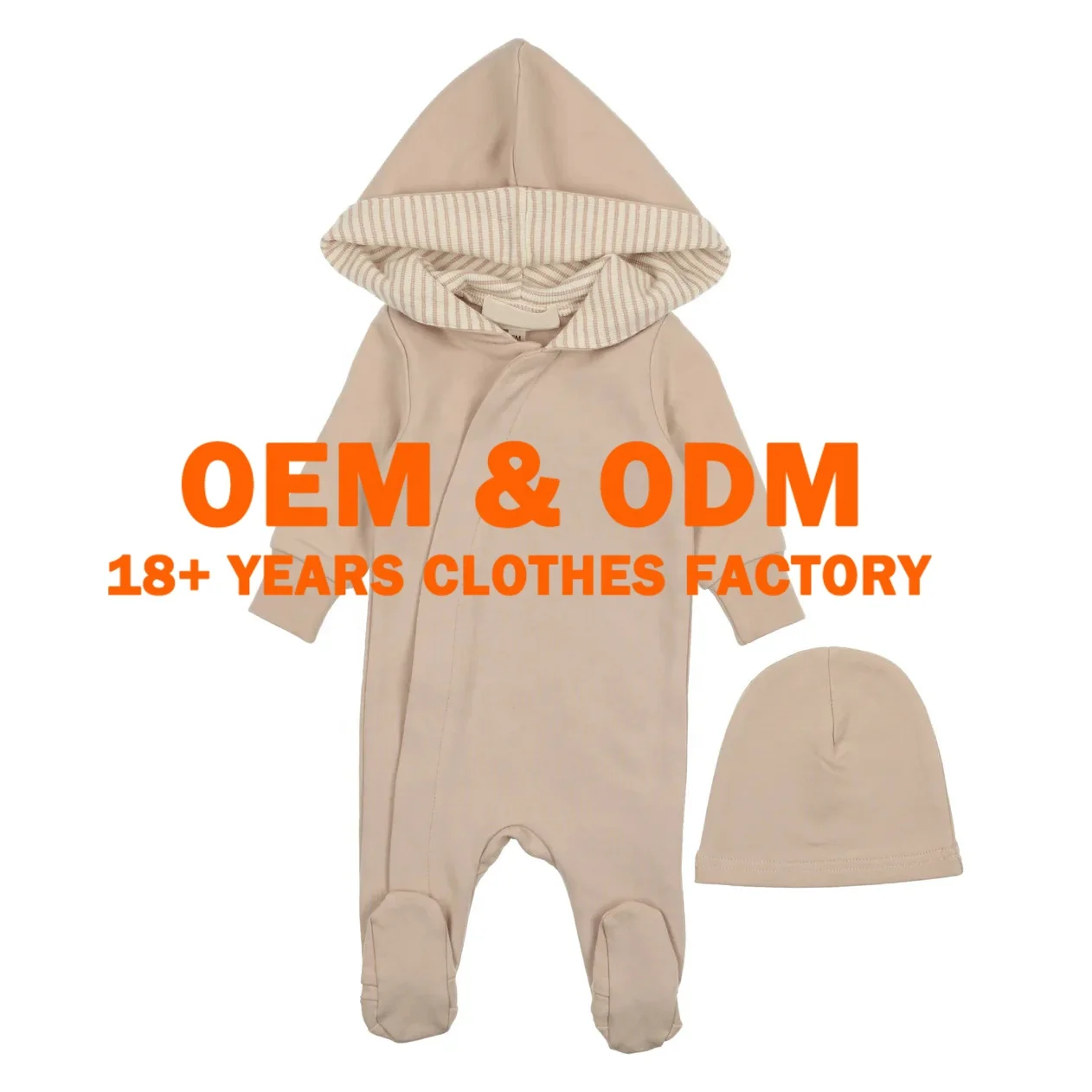 Newborn Baby Clothes Kids Clothing Natural Fabric Plain Solid Hoodie Long Sleeves Baby Romper with Hat