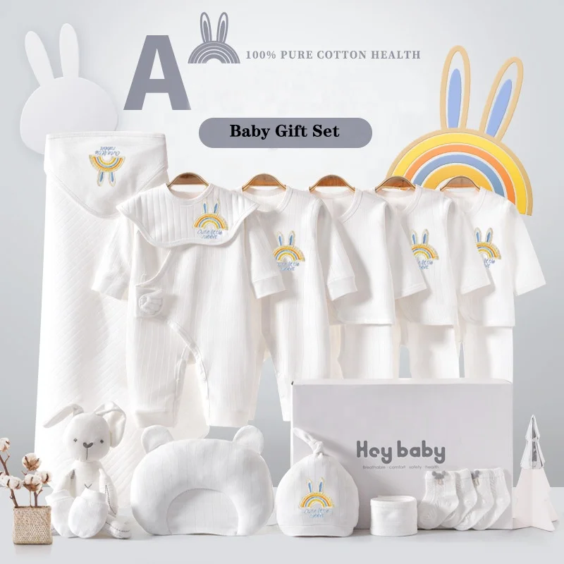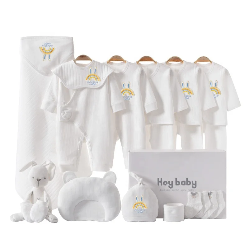 Newborn 20pcs Knitted Rompers 100% Cotton Cartoon Pattern Baby Clothing Set Bodysuit Sleepwear White Baby Clothing Gift Set