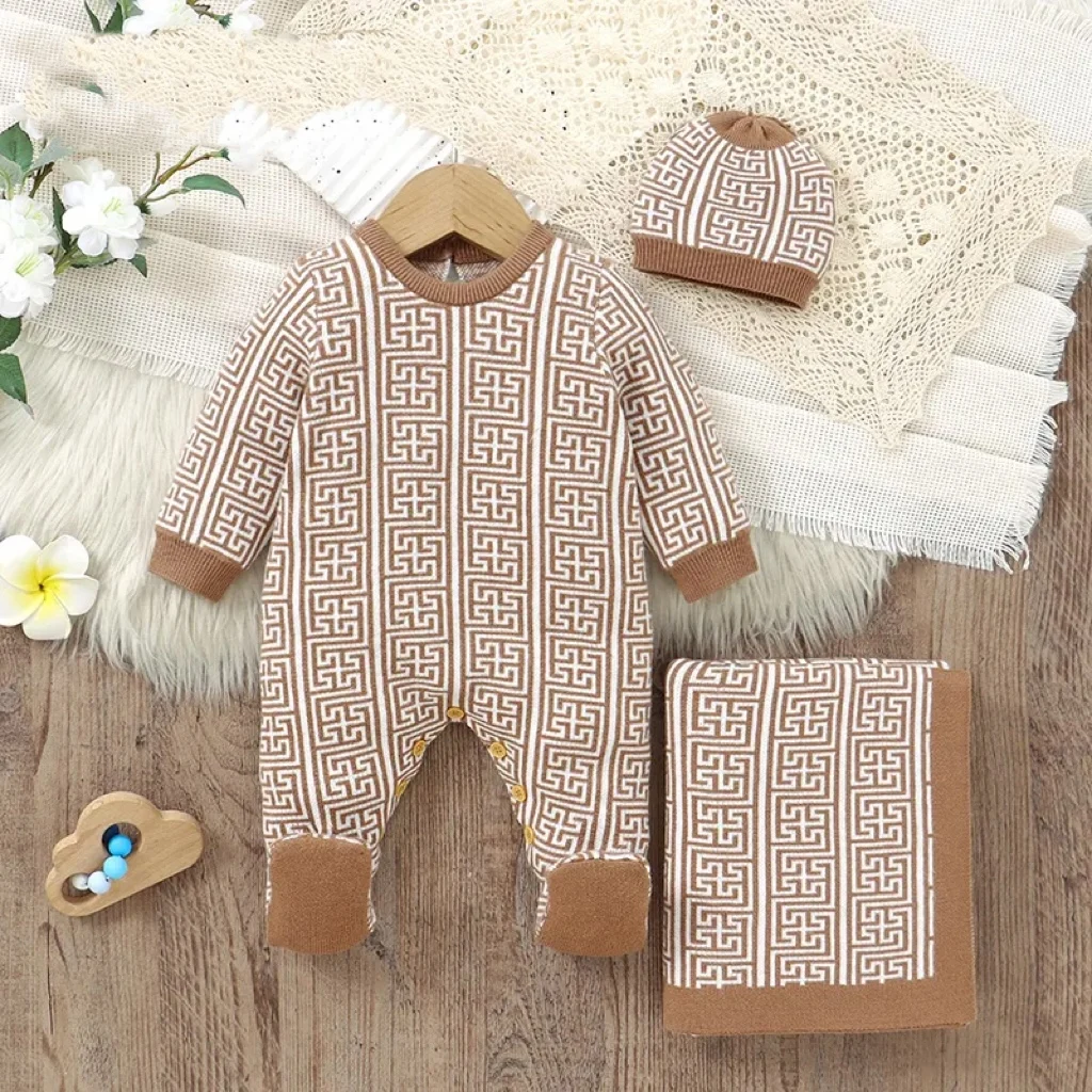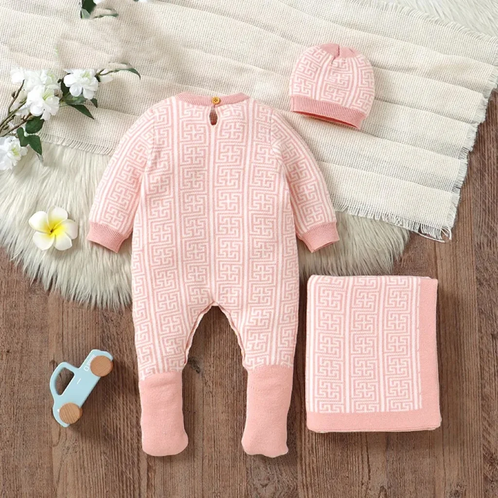 Autumn Winter Casual Clothing Set Soft Knitted Baby Footed Rompers Hats Babies Blankets Clothing Sets