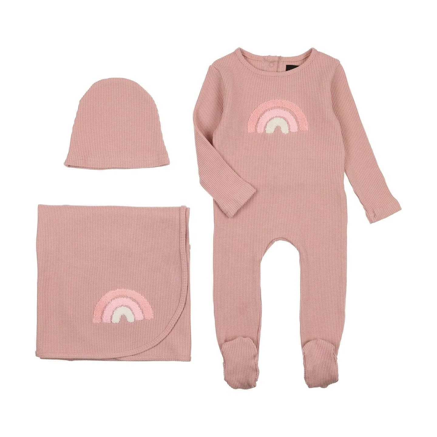 Wholesale High Quality Custom Patchwork Logo Waffle Cotton Knit Newborn Baby Clothes