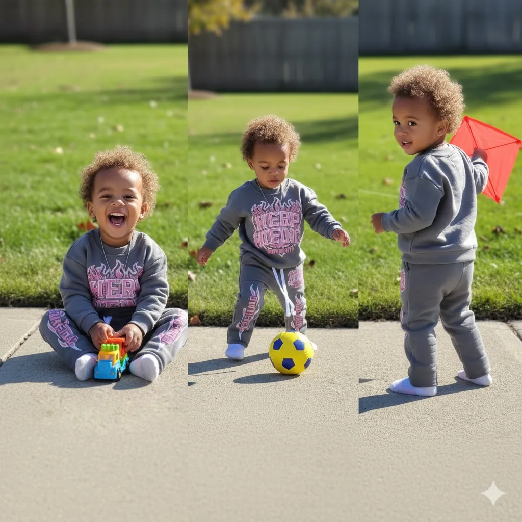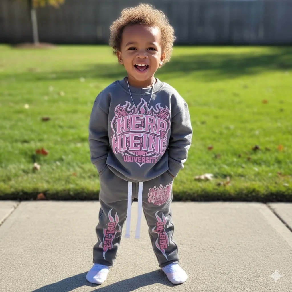 Wholesale Custom Print Kid Streetwear High Street 100% Cotton Boy Pullover and Pants Two Piece Kids Clothing Set