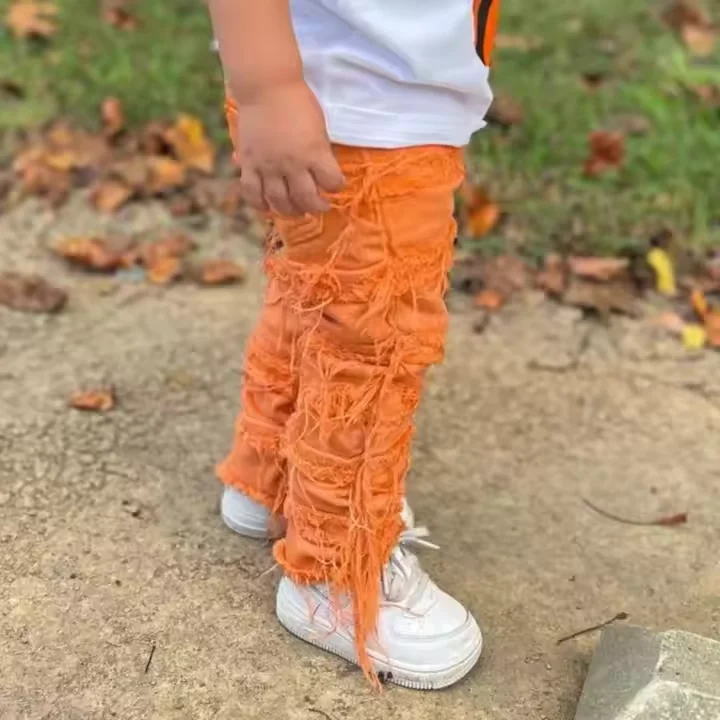 Custom 2026 Boys Jeans Fit Embroidery Stacked Denim Jeans Street Wear Ripped Skinny Jeans Boys Wholesale Custom Denim Pants