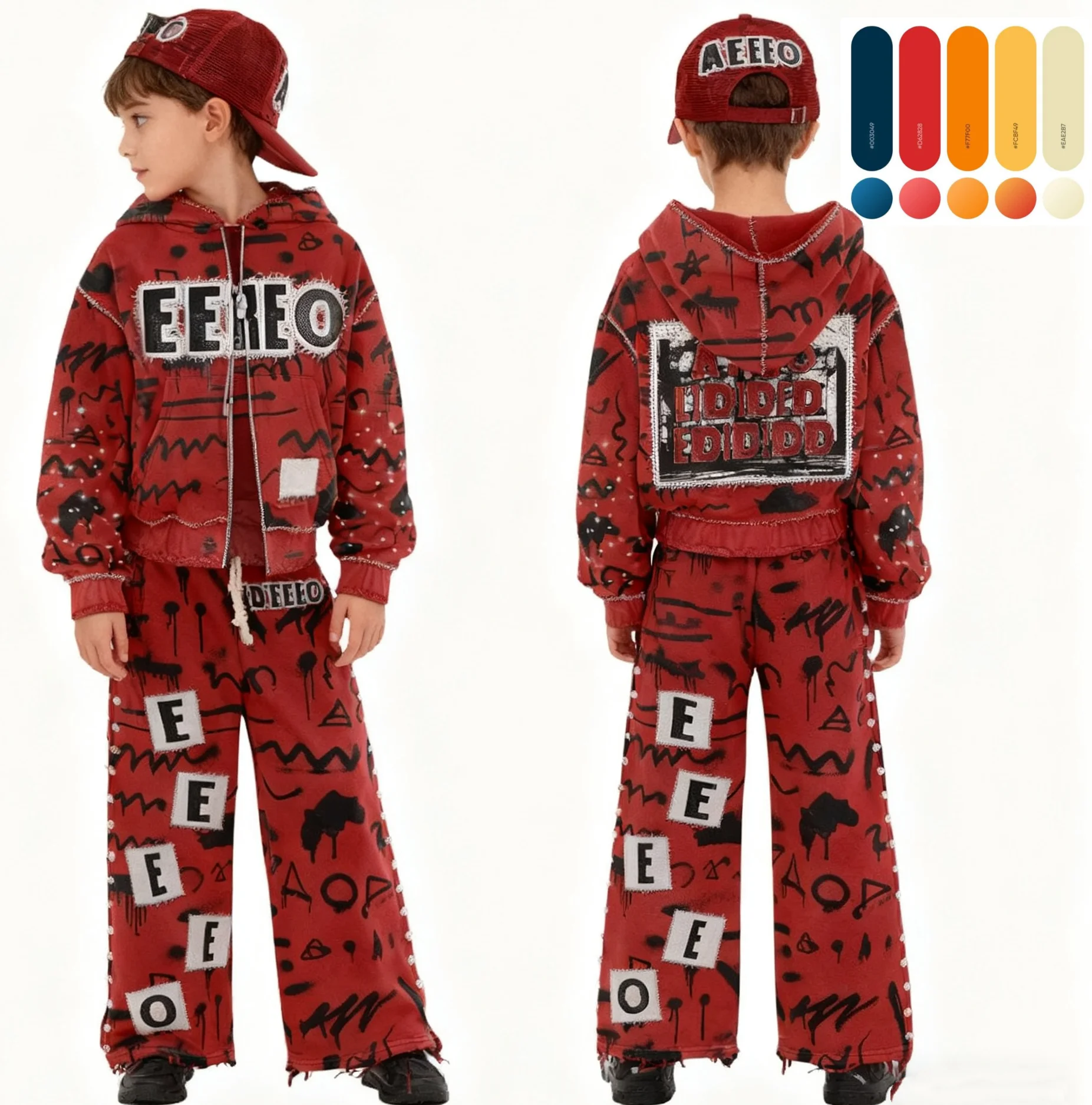 Custom Manufacturer Sweatsuit Double Waist Sweat Suit Rhinestone Hoodie and Flared Sweatpants Set Baggy Oversized Kids Tracksuit
