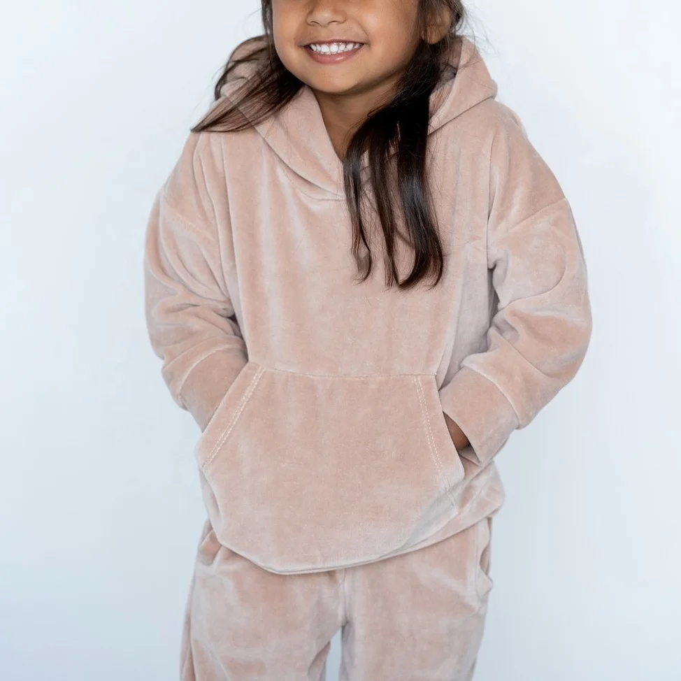 Wholesale Kids Tracksuit Velvet Hoodie and Pants Sets Toddler Little Girls Jogger Set