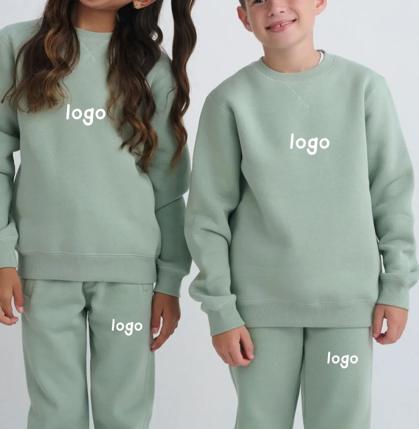 Custom Logo Kids Tracksuits 3-14 Years 350Gms Fleece Plain Kids Jogger Sets Bulk Wholesale Kids Clothing Children Clothes