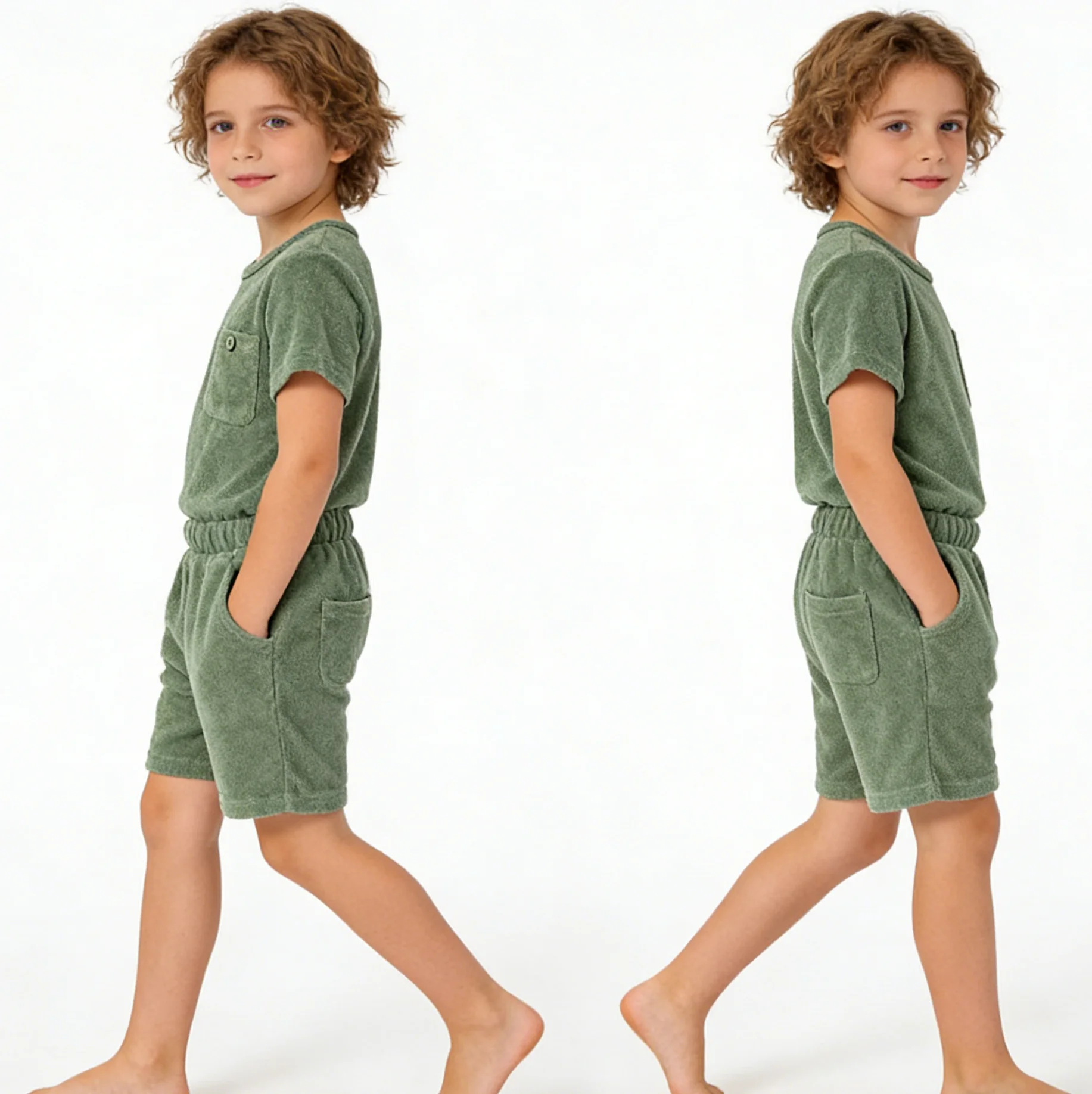 Wholesales Custom Kids Terry Towelling Set Short Sleeve Boys Clothing Sets Sustainable Towel Cloth Kids Clothing Sets