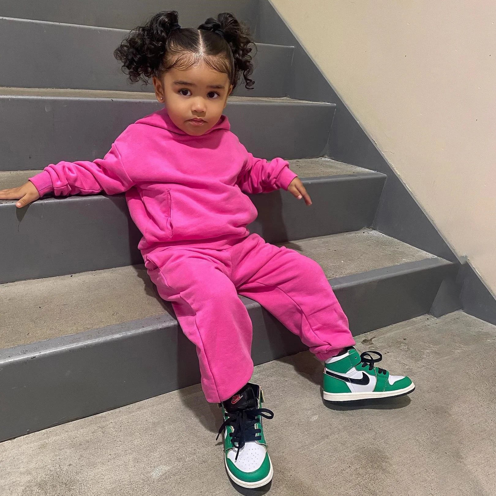 Wholesale High Quality Solid Custom Logo Label Tracksuit Winter Autumn Kids Girl Hoodie Children's Clothing Set