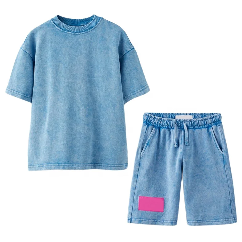 Wholesale Private Label Custom Logo Streetwear Kids Clothing 2026 Summer Boys Short Kids Clothing Set