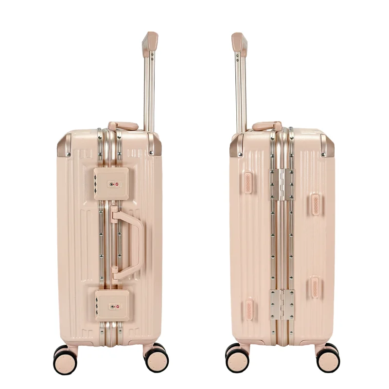2026 Unisex High Quality Travel Luggage Trolley Candy-Colored PC Material Suitcase Aluminum Outdoor Spinner Wheels Lock Opening