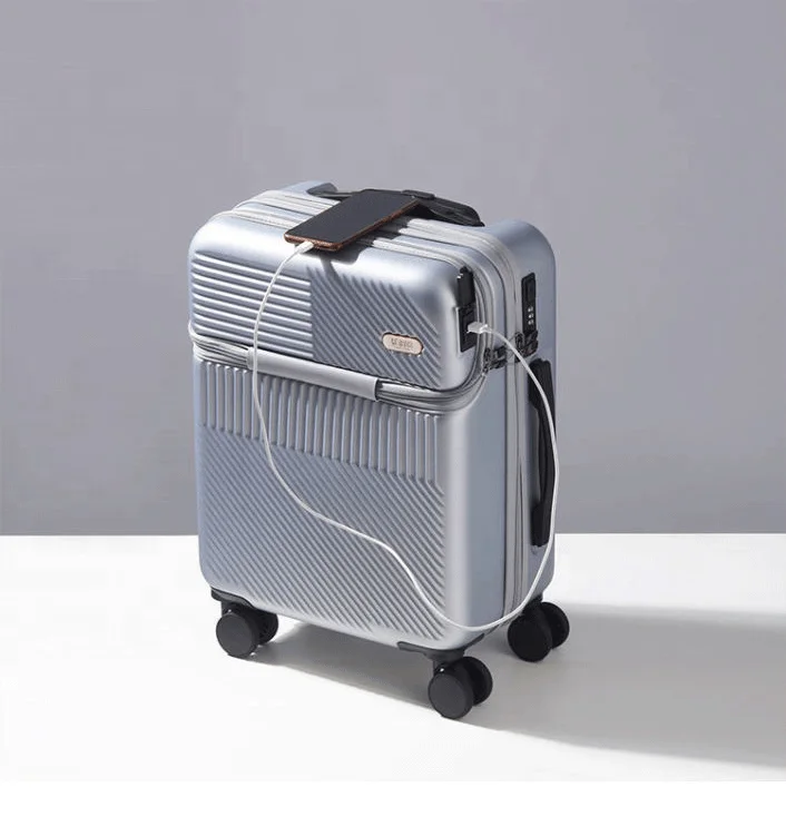 ABS+PC Spinner Luggage Double Wheels Trolley Suitcases With Pocket Compartment Weekend Bag Carry on Luggage Suitcase Set