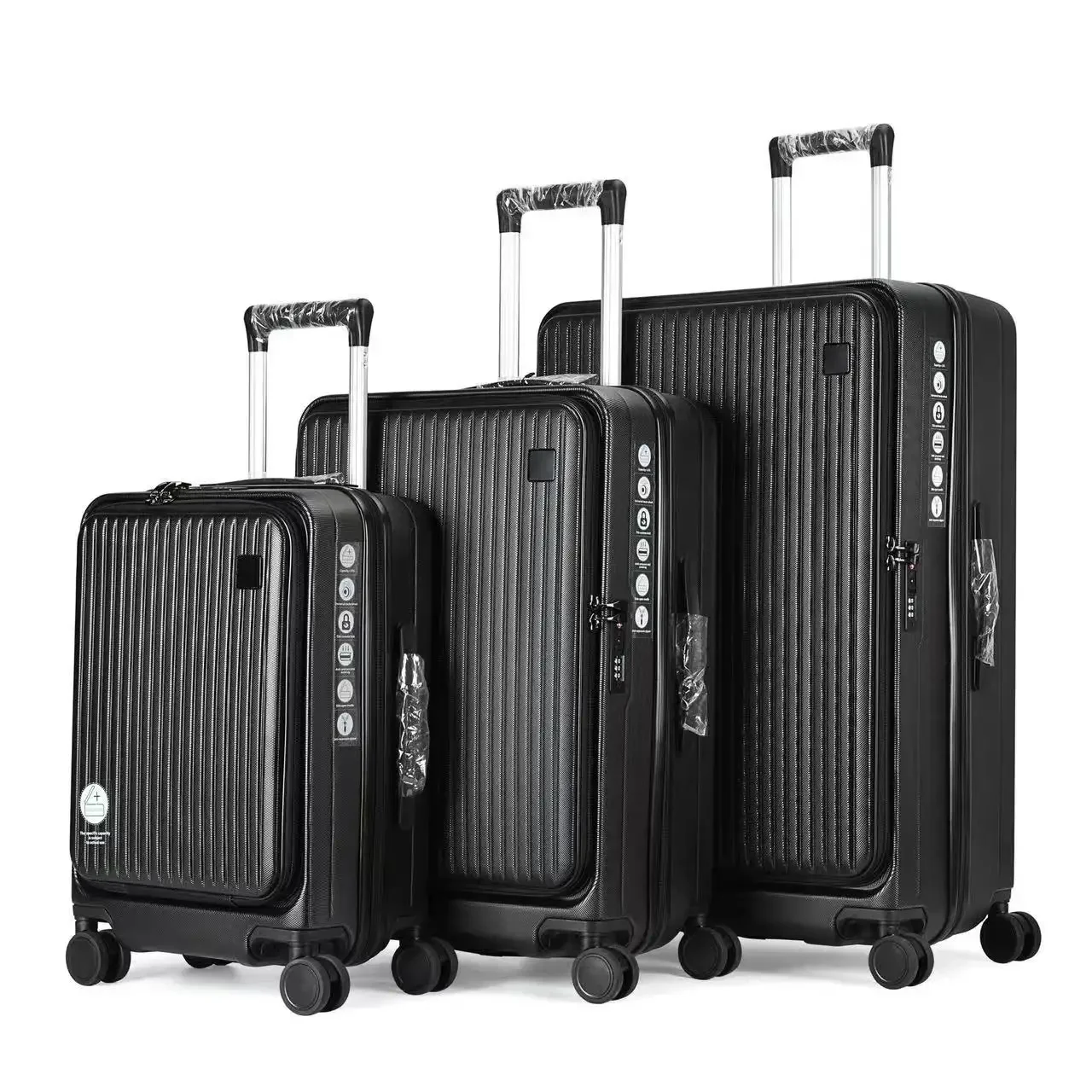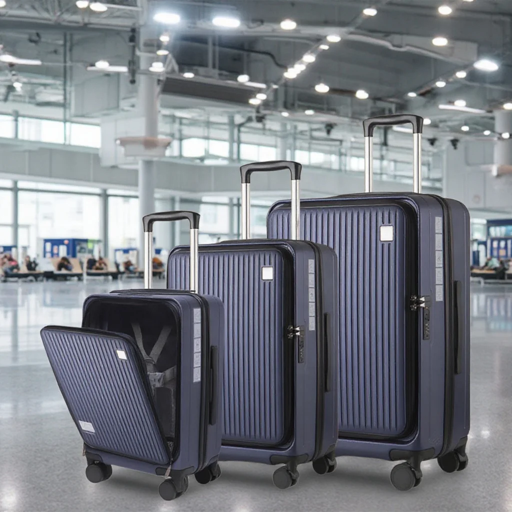 Trendy Unisex ABS PC Trolley Luggage Stylish Carry-On Suitcase Set Front Open Design Spinner Caster TSA Including Laptop Bag