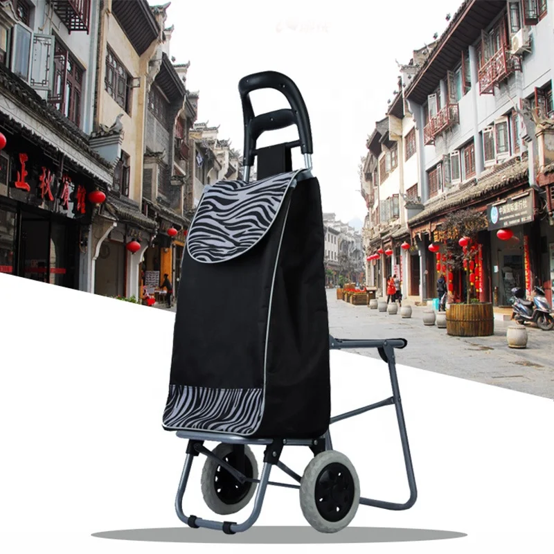 Light Weight Cheap Reusable Folding Shopping Cart Bags Trolley Shopping Folding Cart With Seat and Chair