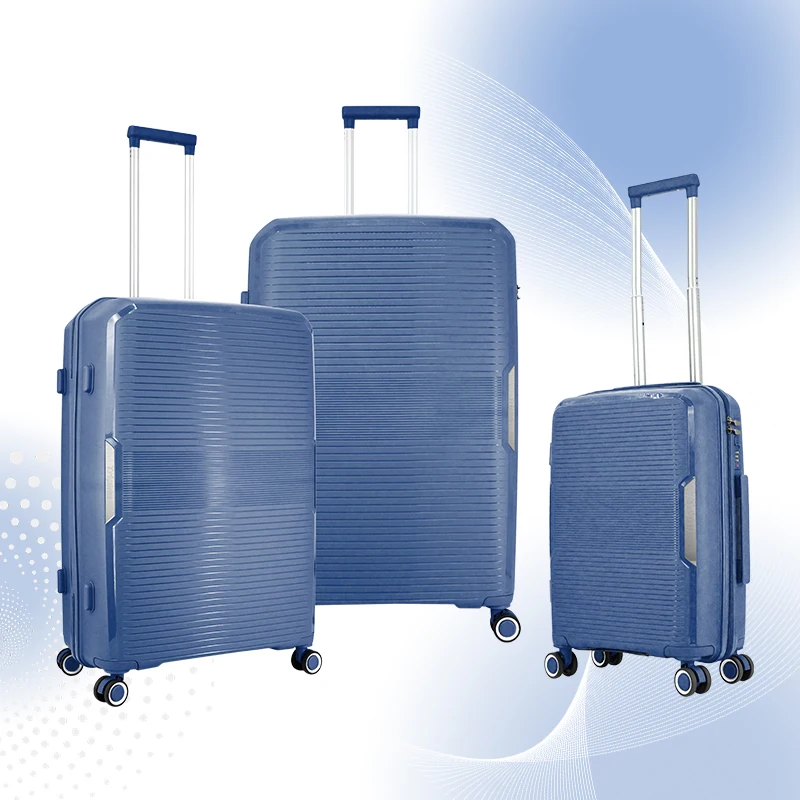 Custom PP Trolley Bag Set 3 Pcs Spinner Women 20 24 28 Zipper PP Hard Carry on Luggage Set