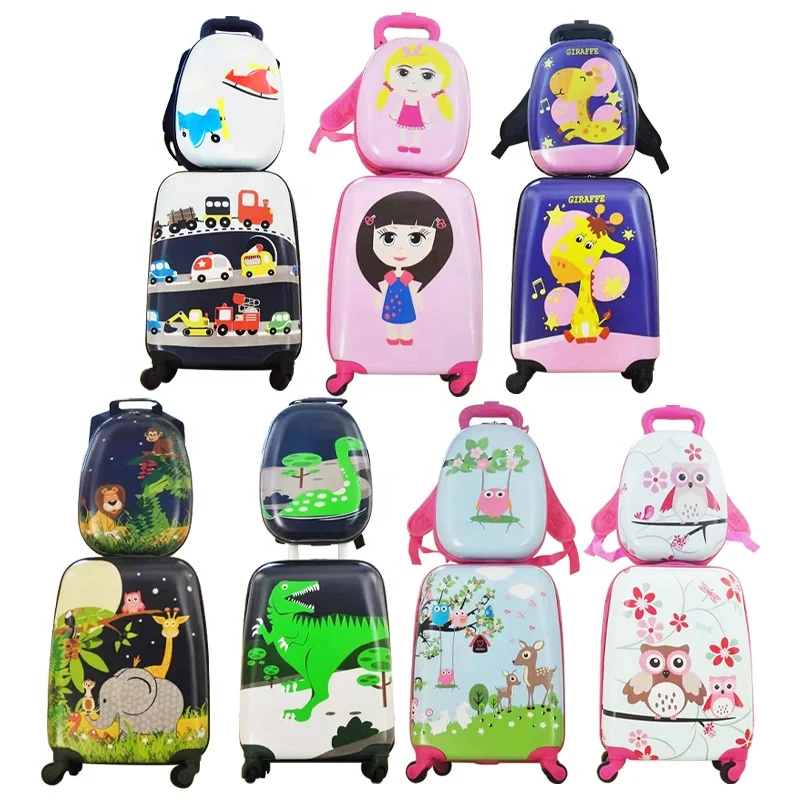 Cartoon ABS Hard Shell Travel Trolley Kids Luggage With Backpack