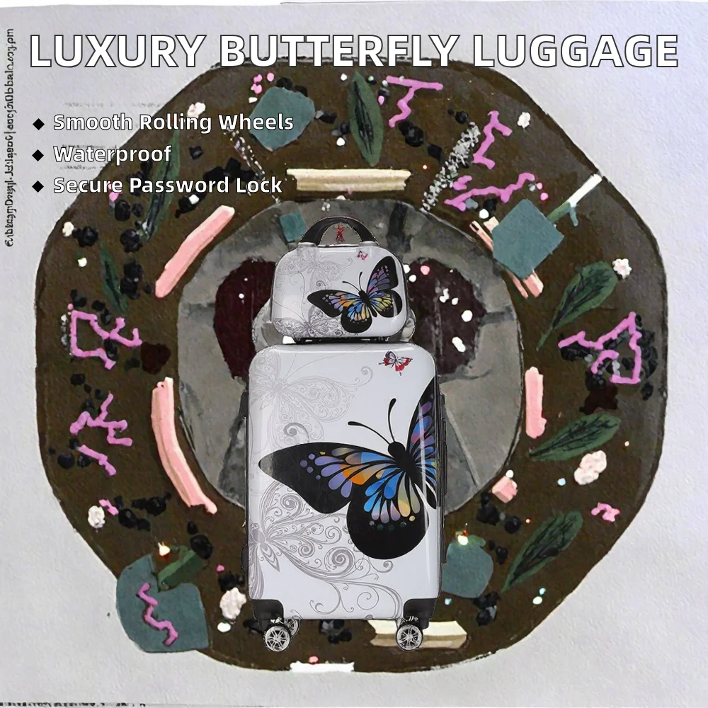 Customized Modern Luxury 4-Piece PC Printed Butterfly Travel Luggage Set 14/20/24/28 Inch Waterproof Large Suitcase Spinner