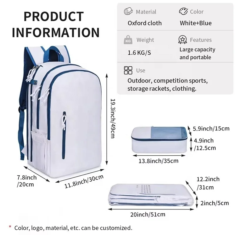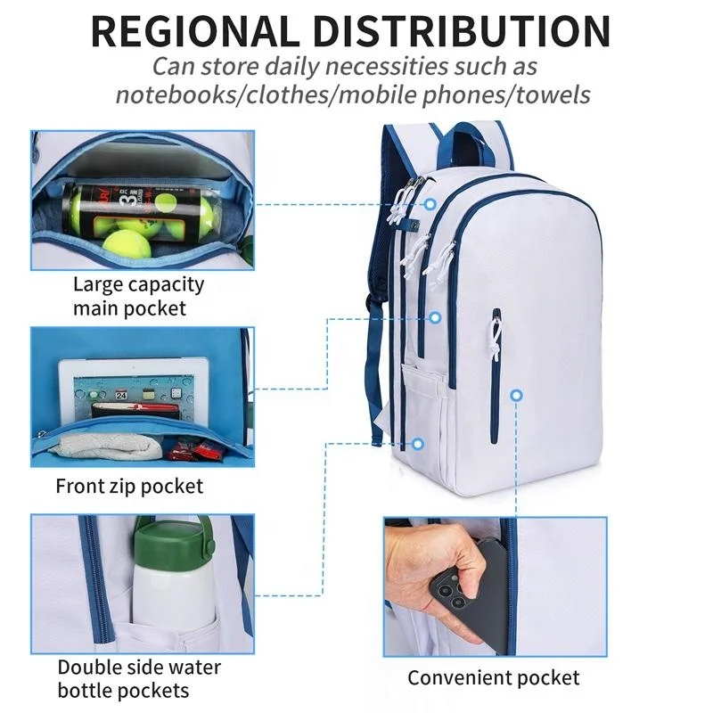 Large Tennis Racket Backpack Women Waterproof Casual Badminton Cover Racquet Sports Athletic Padel Bag with Shoe Compartment