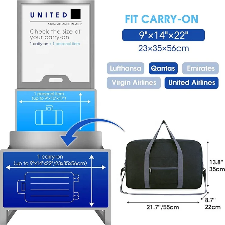 Airlines Cabin Bag Foldable Lightweight Sports Gym Duffel Travel Bag Carry on Luggage Overnight for Women and Men 40L
