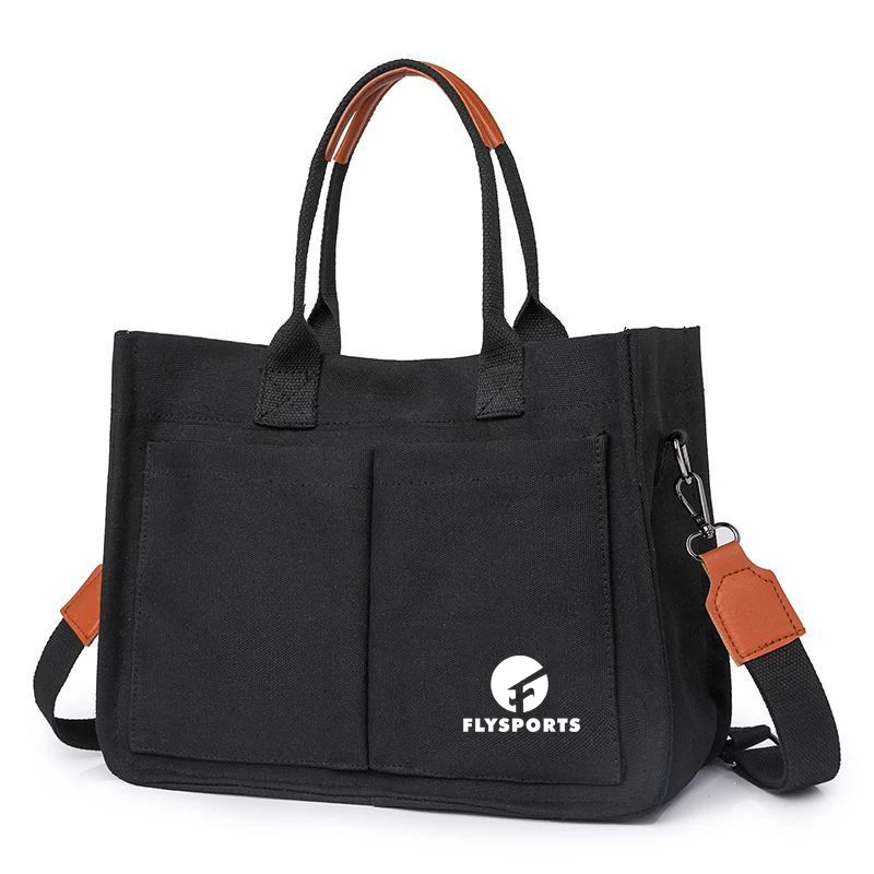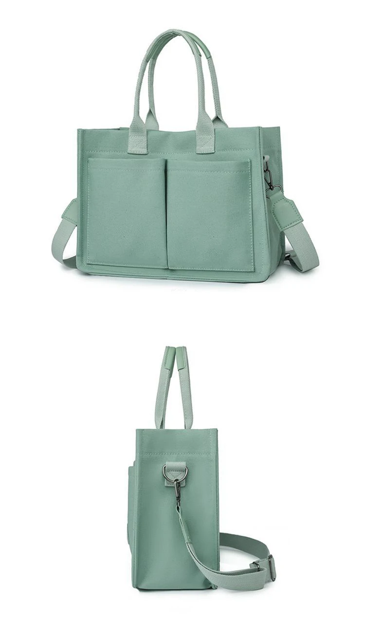 Customization Fashion Square Canvas Lady Tote Shopping Bag Portable Crossbody Bag with Detachable and Adjustable Shoulder Strap