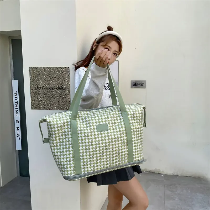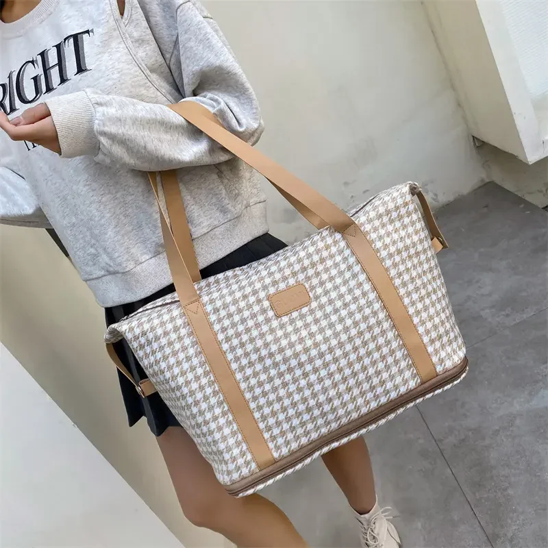 2026 Large Capacity Retro Plaid Weekender Tote Fashionable Overnight Duffel Bag for Women Gym Storage Handbag Comfortable