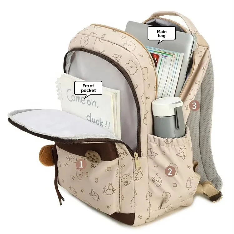 Lightweight Childish Backpack for Middle High School College Students Zipper Closure High Aesthetics Polyester for Campus Use