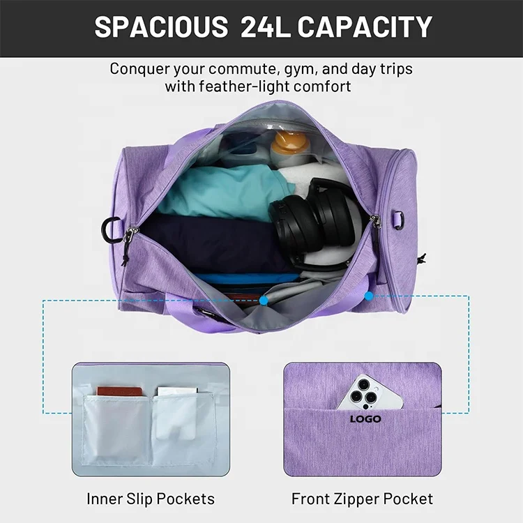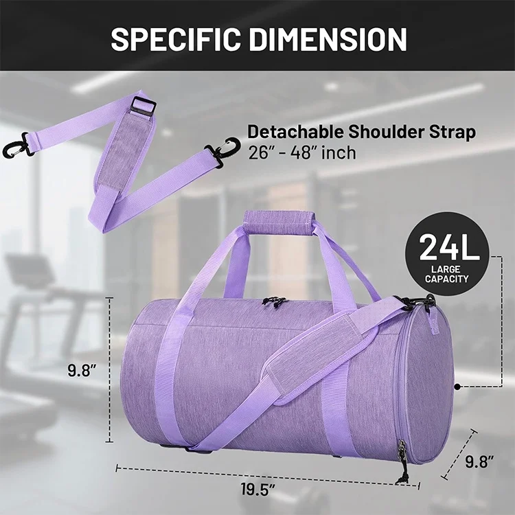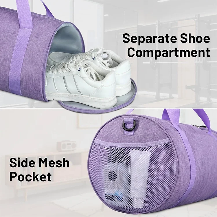 Lightweight Carry on Duffel Men Women Workout Fitness Travel Sports Gym Bag Round Duffle Bag with Shoe Compartment & Wet Pocket