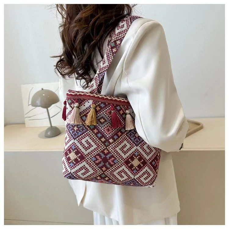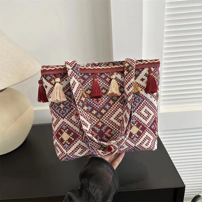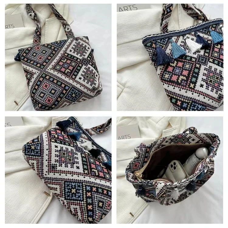 Canvas Large Capacity Tote Bag Women'S New Fashion Ethnic Style Carrying Mommy Bag Student Class Shoulder Bag